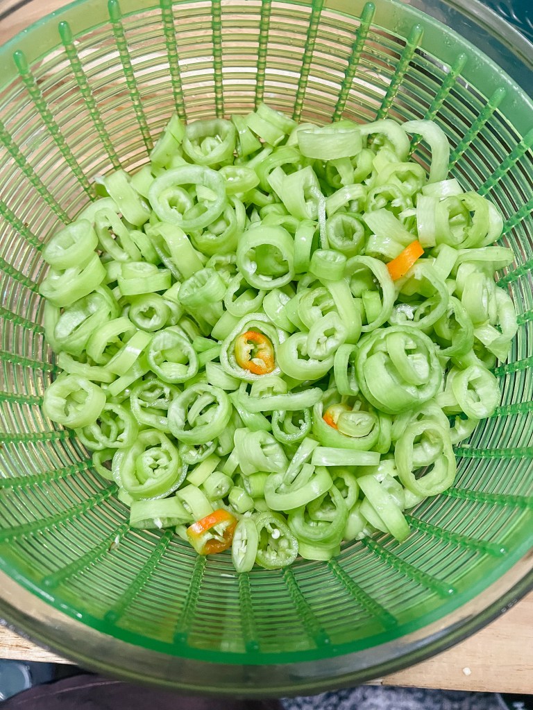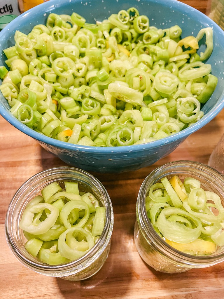 - 1 pound of banana peppers, tops removed and sliced into rings